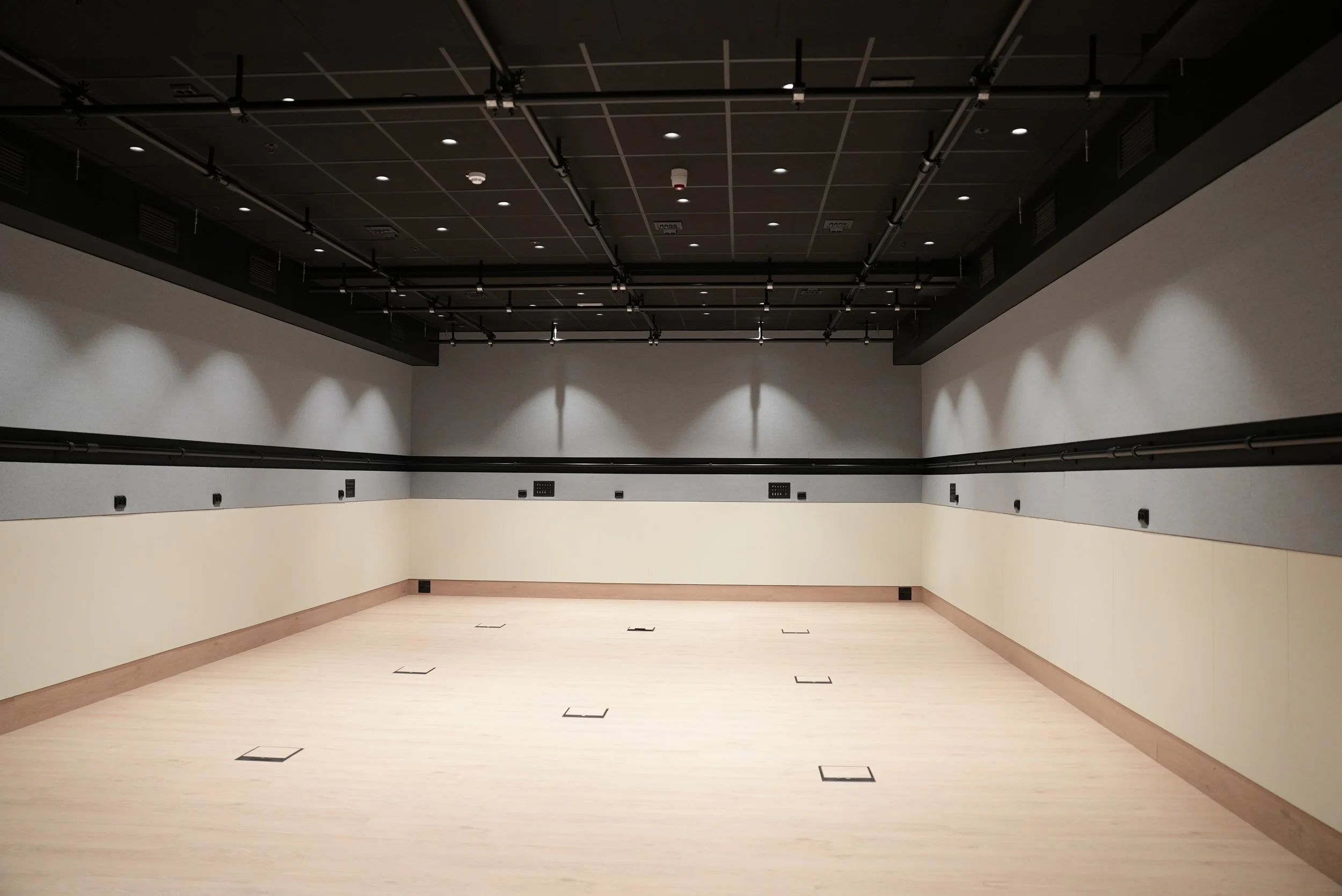 Prøverommet er en selvbetjent blackbox på 108kvm som ligger i 2. etasje på Kraftverk. Rommet egner seg for dans, filmvisning, foto/film-arbeid og møter. Rommet leveres med dansematter på. Du kan selv møblere rommet med tilgjengelige stoler og bord etter behov. Rommet leveres tilbake umøblert.